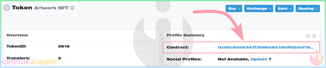 • Однако один способ отобразить и взаимодействовать со своими nft-токенами на компьютере всё же есть, его можно импортировать, как пользовательский токен, используя смарт-контракт nft-токена, который Вы можете найти всё в тех же обозревателях блокчейна etherscan.io или bscscan.com на странице nft-токена: