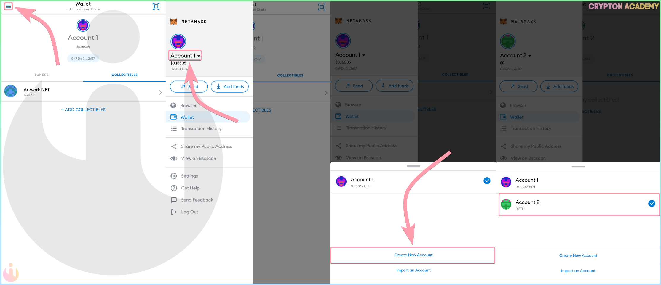 Используя MetaMask, Вы можете иметь сразу несколько кошельков, создавая или импортирую новые.
