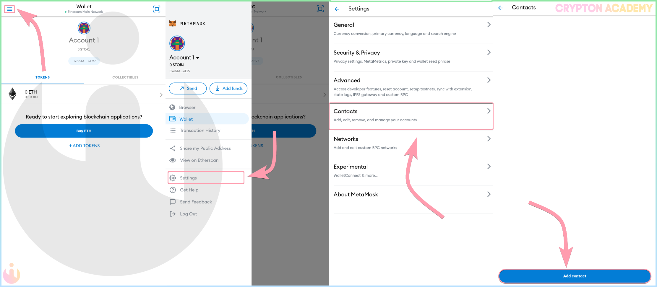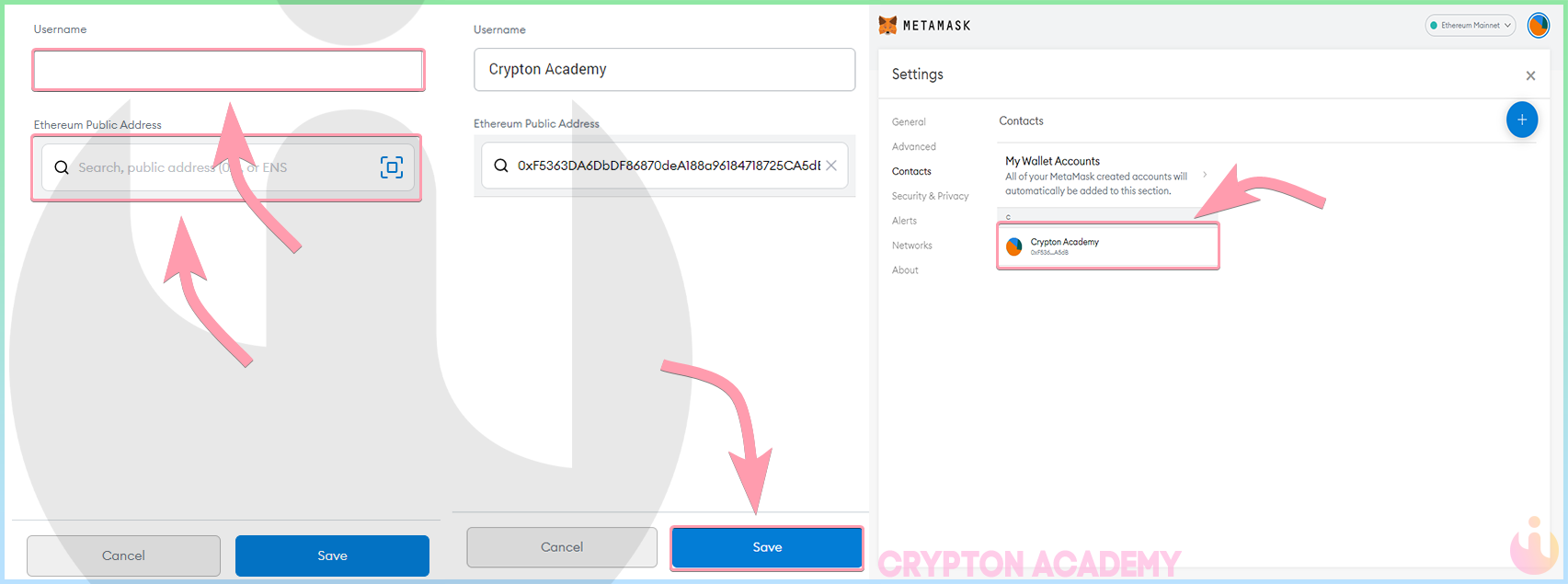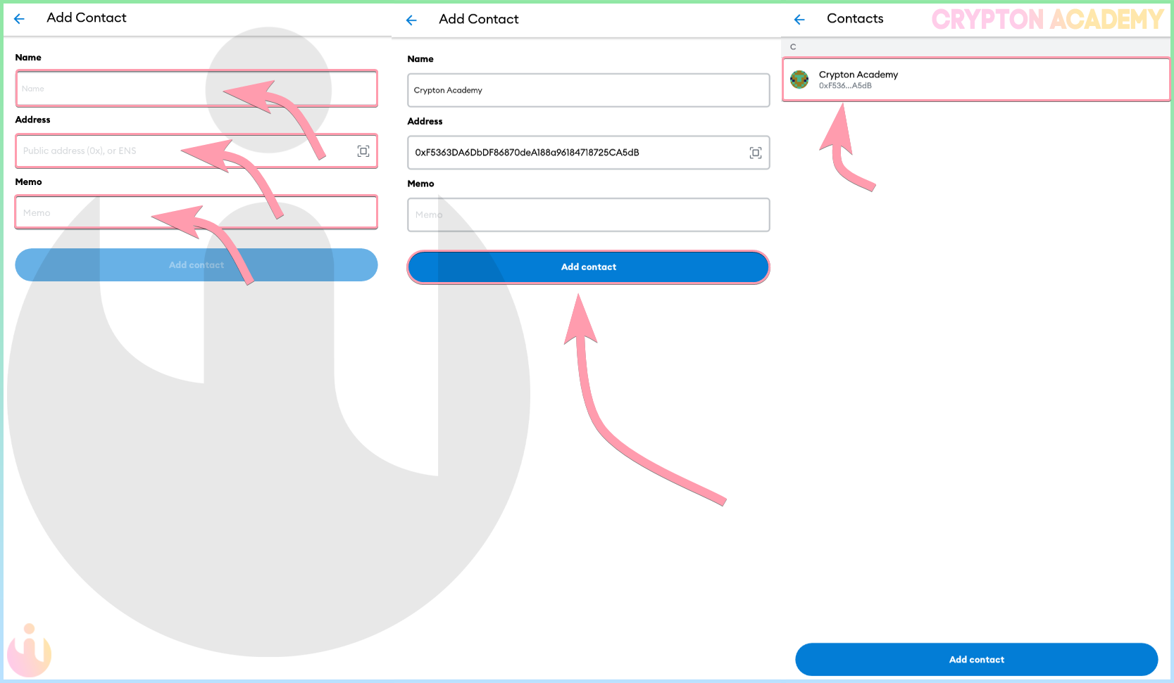 Это что-то вроде «телефонной книги», куда Вы можете сохранить имя и адрес кошелька человека. Это очень удобно, если Вы регулярно совершаете транзакции по одному и тому же адреса, более того, это исключит возможность фишинга.