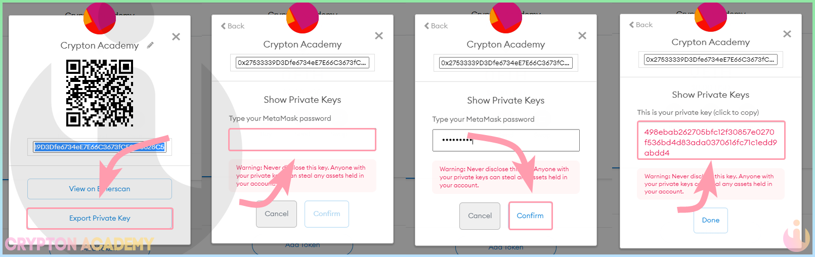 Далее нажмите Export Private Key и введите пароль: