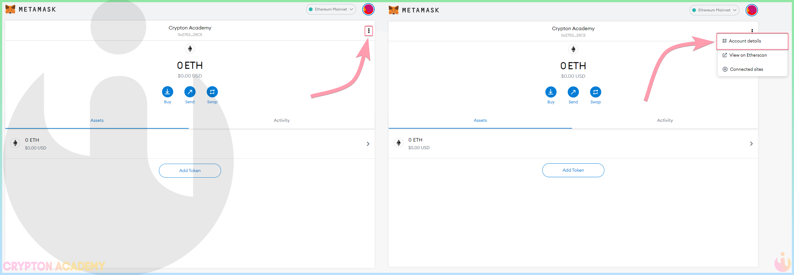 Now, in Metamask you will have two accounts, each of these accounts has a different address/address. And also a different private key. As we have already mentioned, each account has a public and a private key.