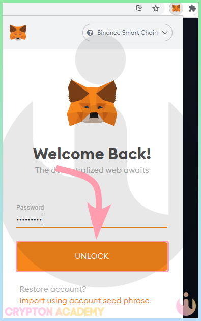 • На компьютере просто перейдите на сайт децентрализованного приложения и разблокируйте кошелек (введите пароль):