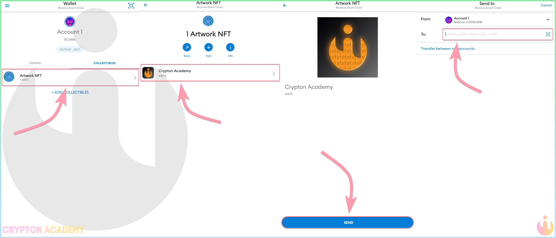 • На смартфоне откройте COLLECTIBLES, далее откройте Ваш NFT-токен и нажмите SEND:
