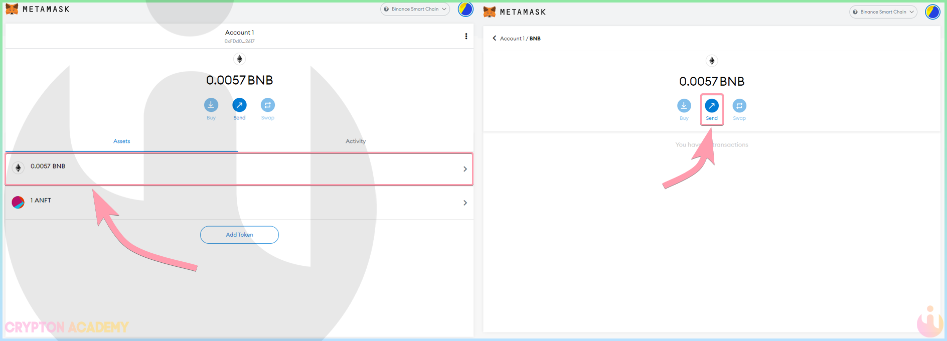 Помните, что для отправки токенов в сети Ethereum и Binance Smart Chain Вам понадобится некоторое количество ETH или BNB соответственно для оплаты комиссий.