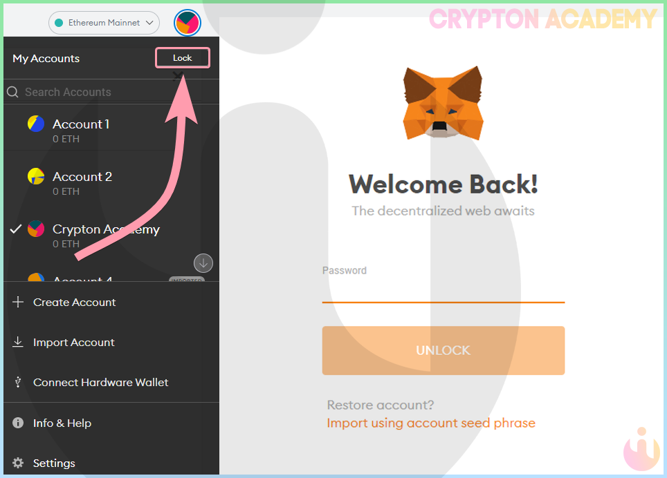 Вам нужно отойти от компьютера? Не забудьте заблокировать кошелек, тем самым обезопасив его!